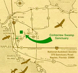 The Corkscrew Swamp Sanctuary is located northeast of Naples, Florida. It is owned and operated by the National Audubon Society. The Sanctuary’s 11,000 acres are within the Big Cypress Swamp and they contain the country’s largest remaining stand of 400 to 700 year-old virgin bald cypresses.